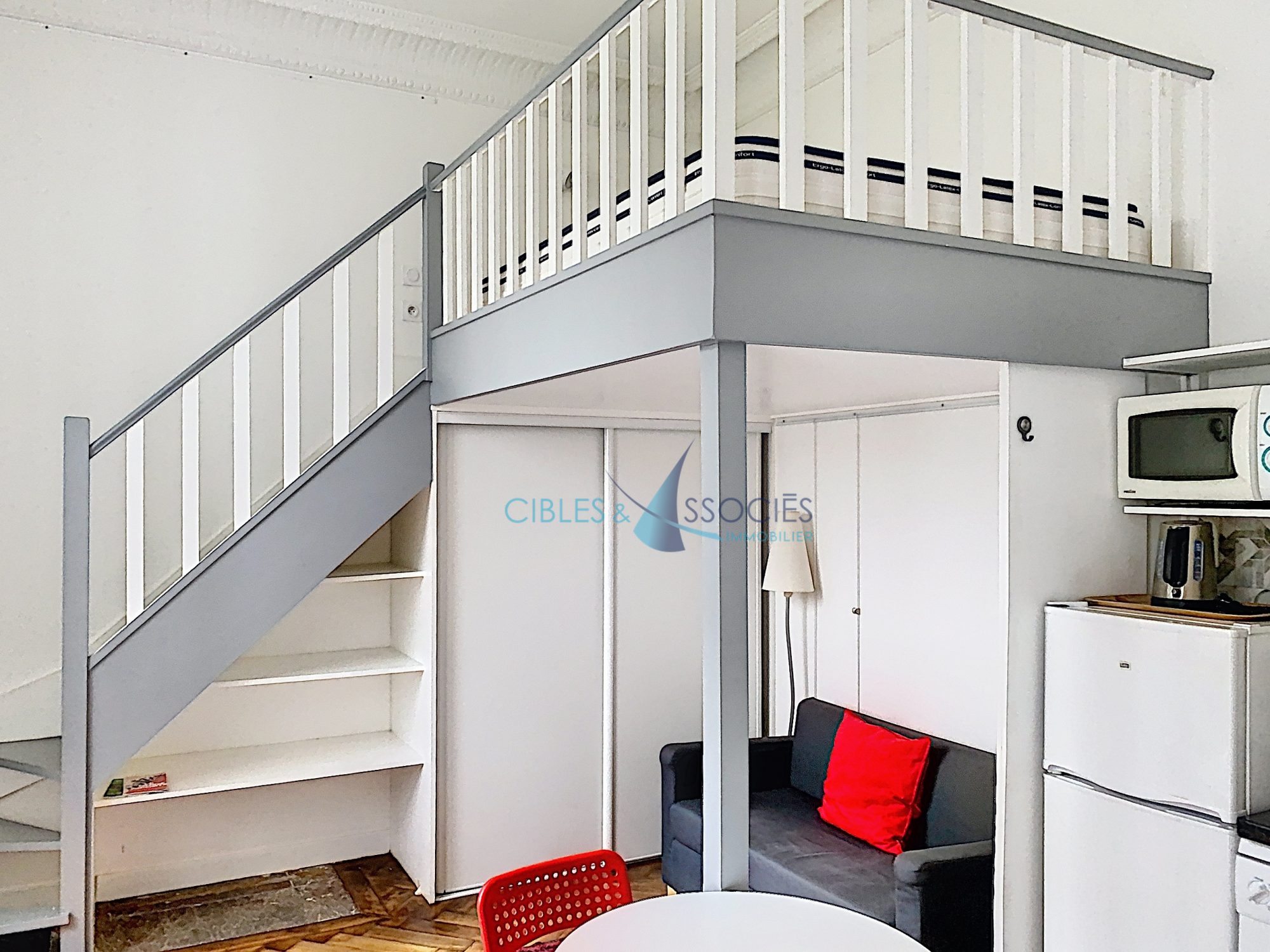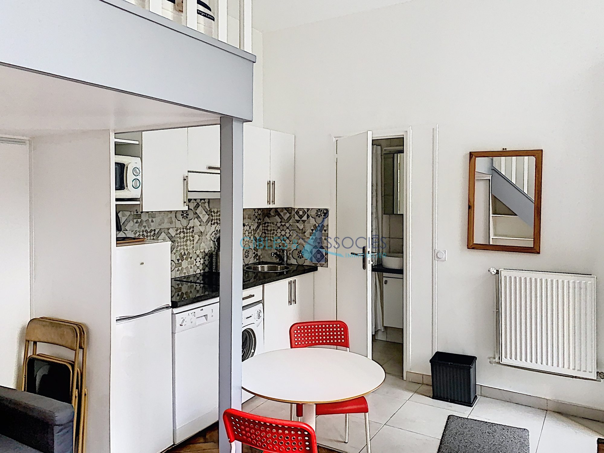 Pied à terre Idéal à Neuilly – Quartier Centre Hotel de Ville/Gouraud, Métro Pont de Neuilly (ligne 1) à 5 mns. Studio de 18 m2 en très bon état meublé et équipé (Lave-linge, Lave-vaisselle, réfrigérateur, TV, hotte aspirante, micro-ondes et plaque de cuisson). Salle de douche comprenant les WC. Belle hauteur sous plafond ayant permis la création d’un palier pour installer un confortable couchage. Calme et lumineux avec jouissance à discrétion d’un jardin. Espace de stockage/local à vélos d’environ 5m2 voisin à l’appartement. Chauffage et eau chaude : individuels gaz. Orienté Sud/Ouest.