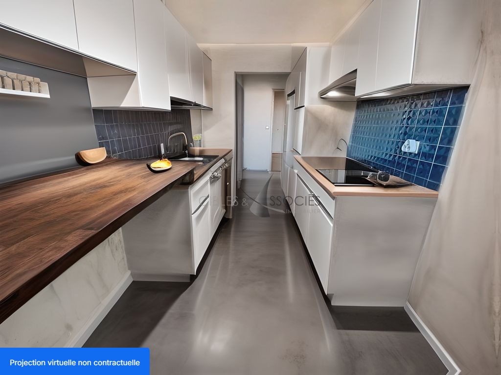 Il se compose actuellement : d’une entrée avec placards, d’un séjour double ouvrant sur balcon, de trois chambres, d’une cuisine aménagée et équipée, d’une salle de bain avec WC, d’une salle d’eau, d’un WC séparé, d’un dressing et de nombreux rangements intégrés.