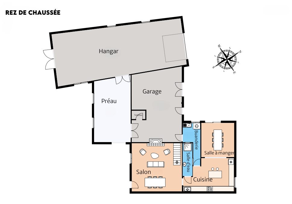 Son atout majeur : un hangar attenant de 100 m², doté d’une porte métallique motorisée, idéal pour un artisan, un projet de stockage ou un futur agrandissement.